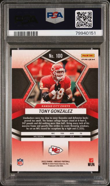 2022 Panini Mosaic 100 Tony Gonzalez No Huddle Silver - PSA 9