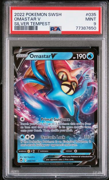 2022 Pokemon Sword & Shield Silver Tempest 035 Omastar V - PSA MINT 9