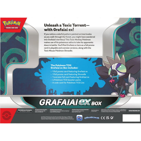 Unleash a Toxic Torrent—with Grafaiai Ex! If you notice a colorful pattern painted on tree trunks as you walk through the forest, you might have wandered into Grafaiai’s territory! This Toxic Monkey Pokémon makes use of its poisonous saliva to take its opponents down in battle. You’ll find Grafaiai ex here as a foil promo card in playable and oversize versions, along with the Toxic Mouse Pokémon Shroodle.